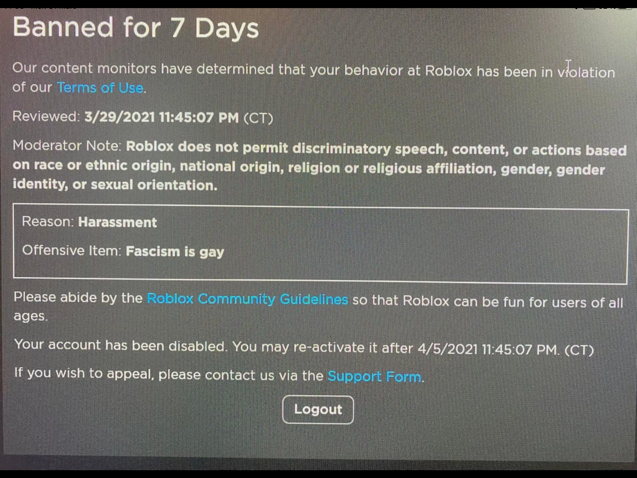 Roblox banning opinion | Fandom